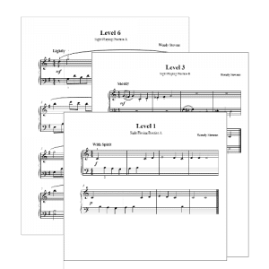This PDF download includes 12 pieces, 2 pieces each for levels 1-6. This reproducible resource will license you to print these practice pieces as many times as needed for your own students to help prepare them for these or other events.