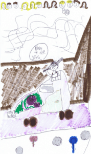 My clown is very hyper and wild. She loves to sing in a clown’s car and she loves diring in her pink polly pocket car.