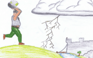 My cartoon’s name is Brutus. He is an angry, ill-tempered man. He is from the Dark Ages.