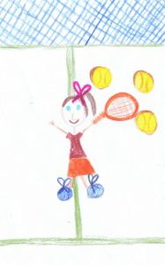 Zelda is a hippity-hoppity girl who enjoys playing tennis. She’s only as tall as the net, but has a super-duper serve. She can slice the ball like a banana peel so watch out for Zelda.
