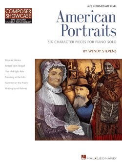 There are 6 characters pieces in this book. Before each character piece is a beautiful portrait along with intriguing historical background sure to inspire the intermediate-level pianist. Pieces include: Letters from Abigail • Frontier Chrous • The Midnight Ride • Morning at the Falls • Summer on the Prairie • Underground Railway. Can you guess who the forgotten hero or heroine might be for each of these pieces?