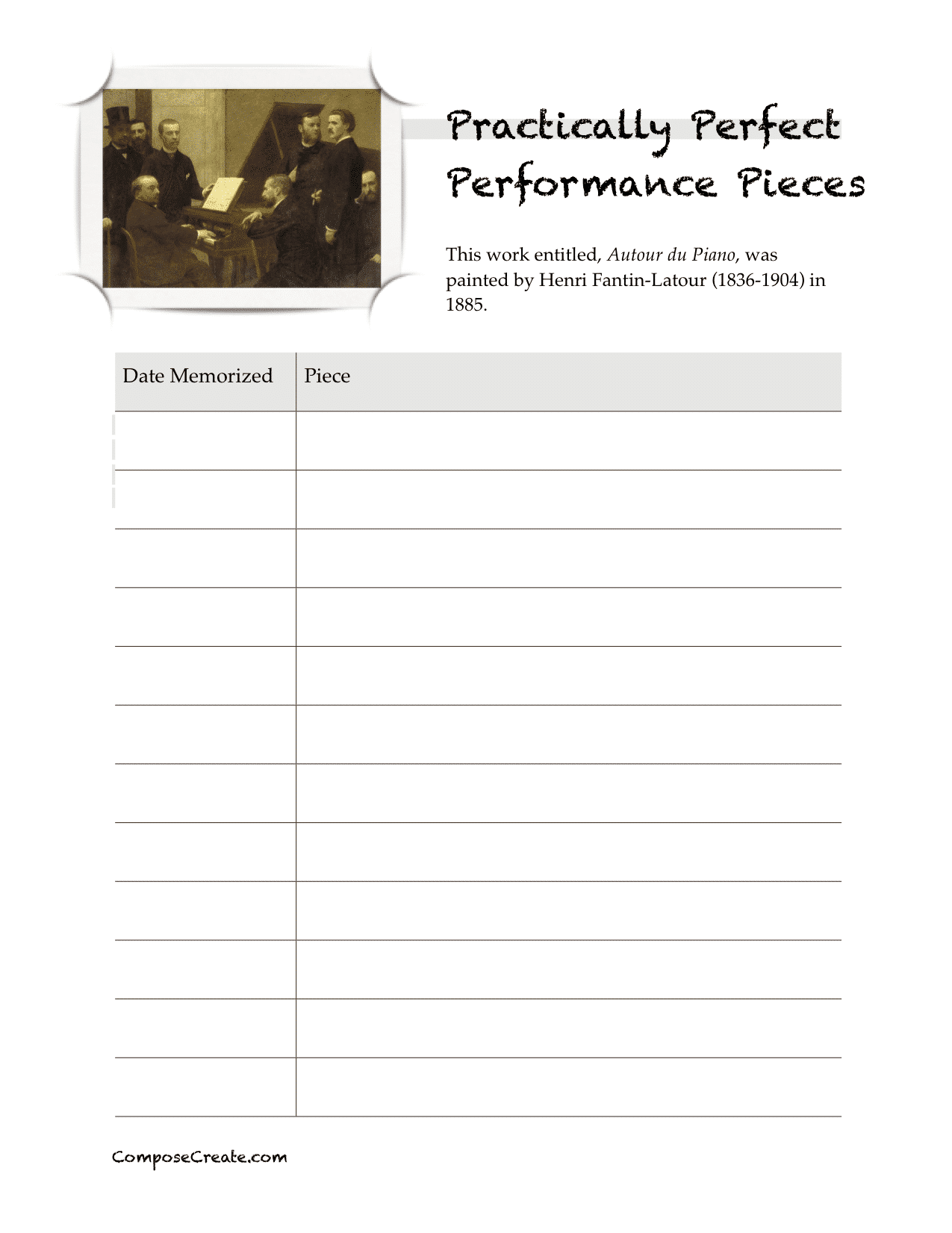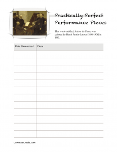 You are welcome to use this Practically Perfect Performance Pieces chart for your own students. Stay tuned for the WTL pieces chart that corresponds in form to this one.