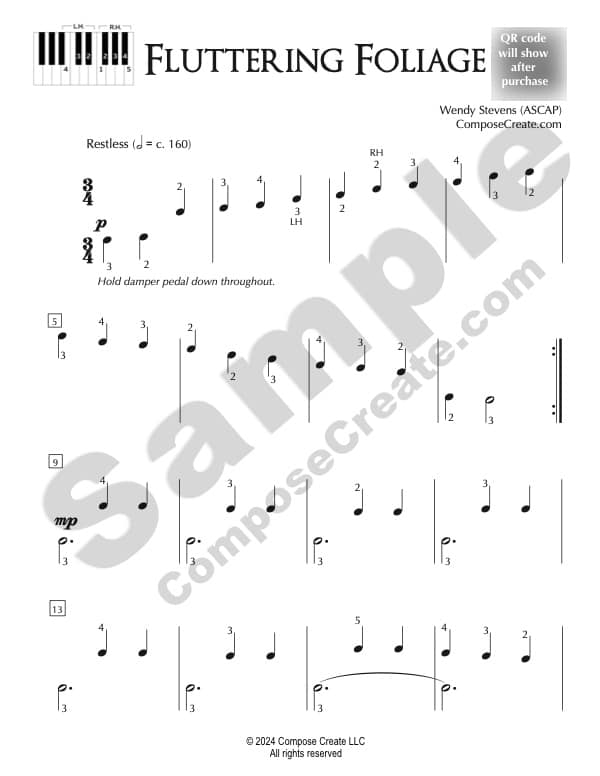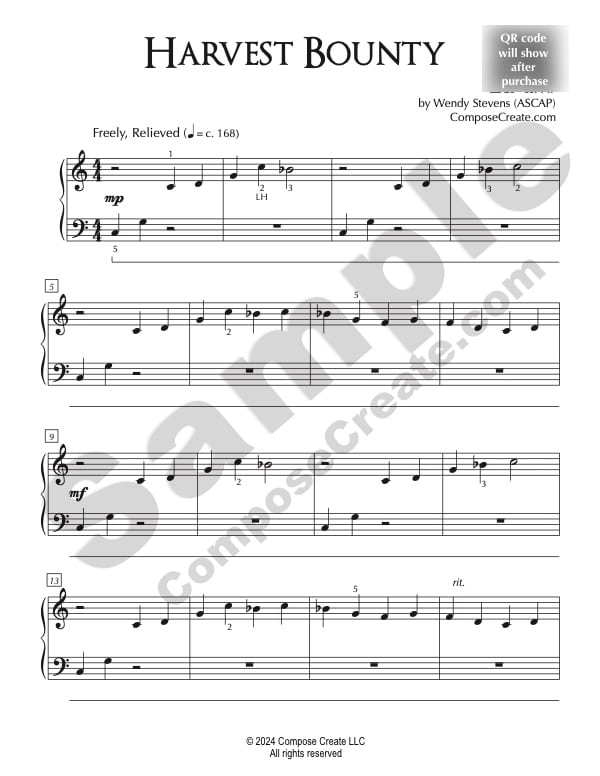 Plus, a QR code is included on the first page of the PDFs (not pictured in the sample) so students can scan the code and it will take them directly to the performance recording of the piece. This can help them be inspired and learn the piece even more effectively without you having to send the mp3 to them!