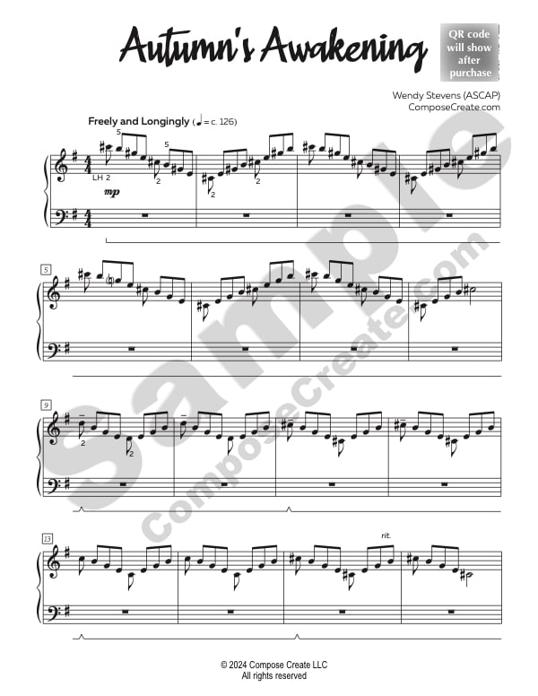 Autumn’s Awakening comes with a bonus mp3 recording performed by Wendy Stevens. You are permitted to send this example performance track to your students to help them learn the piece.