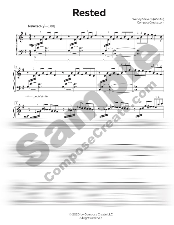 The pieces in Feeling Fine are early intermediate. The smallest rhythm value is the sixteenth note, but these are all grouped in 4s and are easy to play rhythmically correctly in the context of the other music. Two of the pieces contain syncopated pedaling. One piece is in D Minor. One is in G Major and the final piece is in F Major.