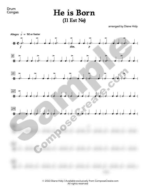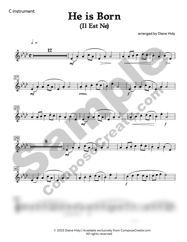 He is Born Duet with C Instrument and Drum arranged by Diane Hidy is delivered digitally (through your email receipt) and is studio licensed. This means that you can print and use this for yourself or any student you directly teach.