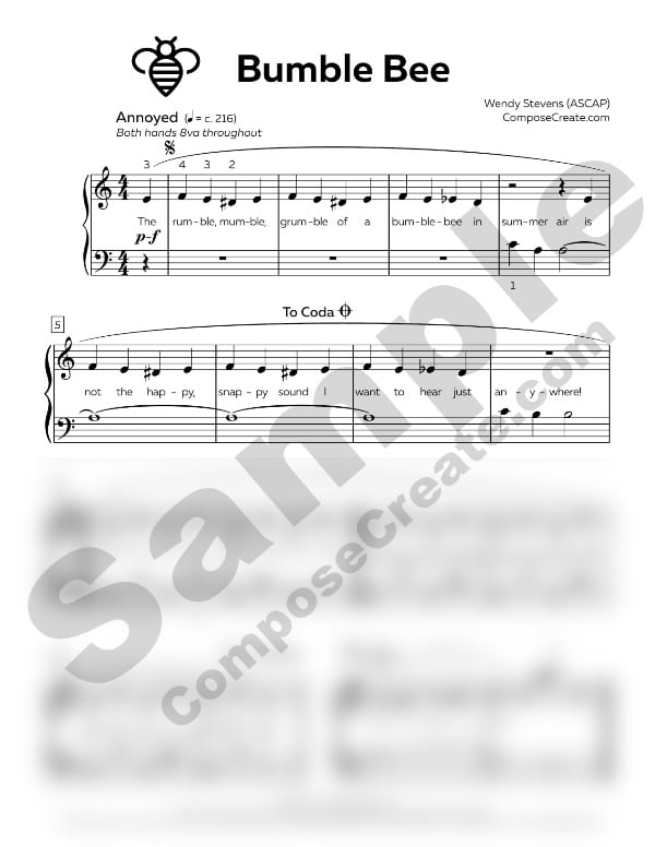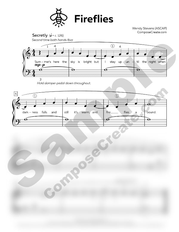 When you purchase Insects on the Move Short Sheets®, you will receive a bonus mp3 recording of each of these pieces. This can help your student learn the piece more quickly. You are permitted to send these example performance tracks to your students to help them learn the piece.