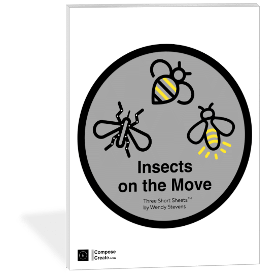 Kids love lyrics, and teachers love presenting pedagogical goodness in a fun and palatable way! In the Insects on the Move Short Sheets®, you’ll find a piece in triple meter, a piece with sharps and flats, and a piece with easily shifting hand positions.