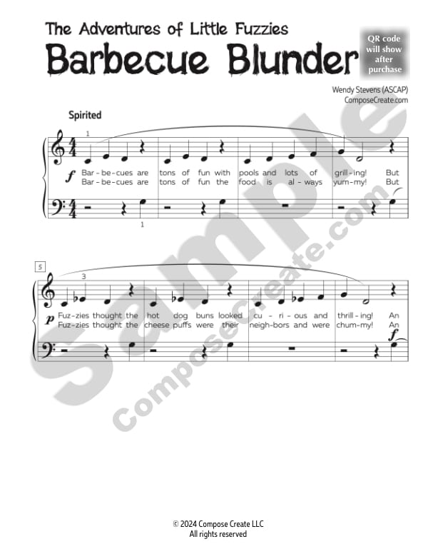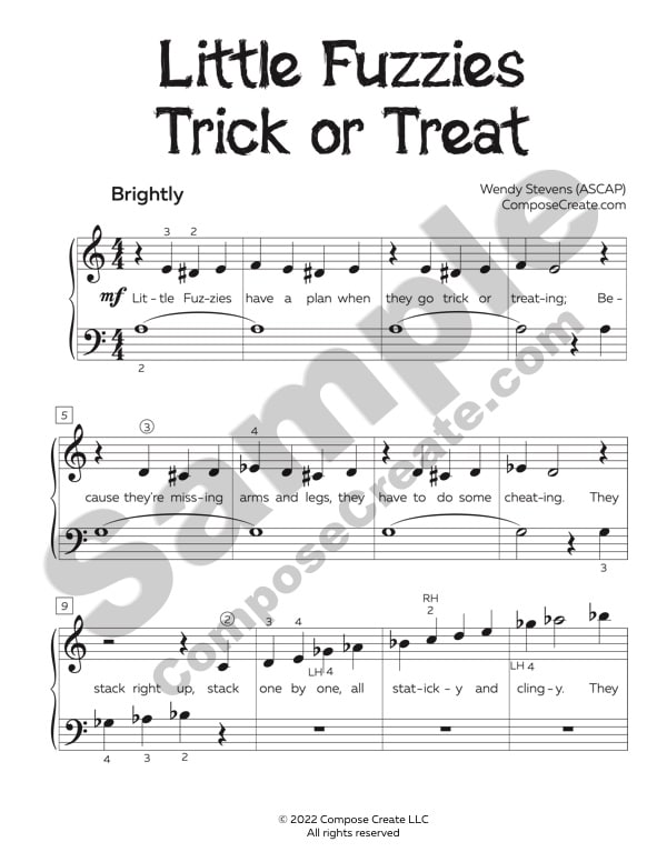 All of these Adventures of Little Fuzzies pieces are excellent ways to teach sharps, flats, and naturals. They also do an exceptional job of moving students around the keyboard so they never get stuck in hand positions or think a specific finger means a specific note.