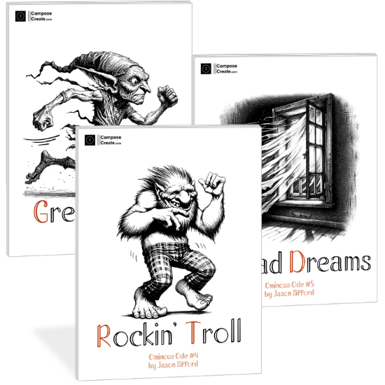My intermediate students loved the first set of Ominous Odes (so do I), and we were very excited to see this sequel set. Gremlin Run has been a big hit already with students – even my reluctant finger-trader for those repeated notes! What a great way to reinforce that skill! All three have already been spoken for and will be performed at our October Costume recital this year, and I don’t doubt they’ll be featured again in future years. Thanks, Jason Sifford! And thank you, Wendy, for bringing Jason to Compose Create!