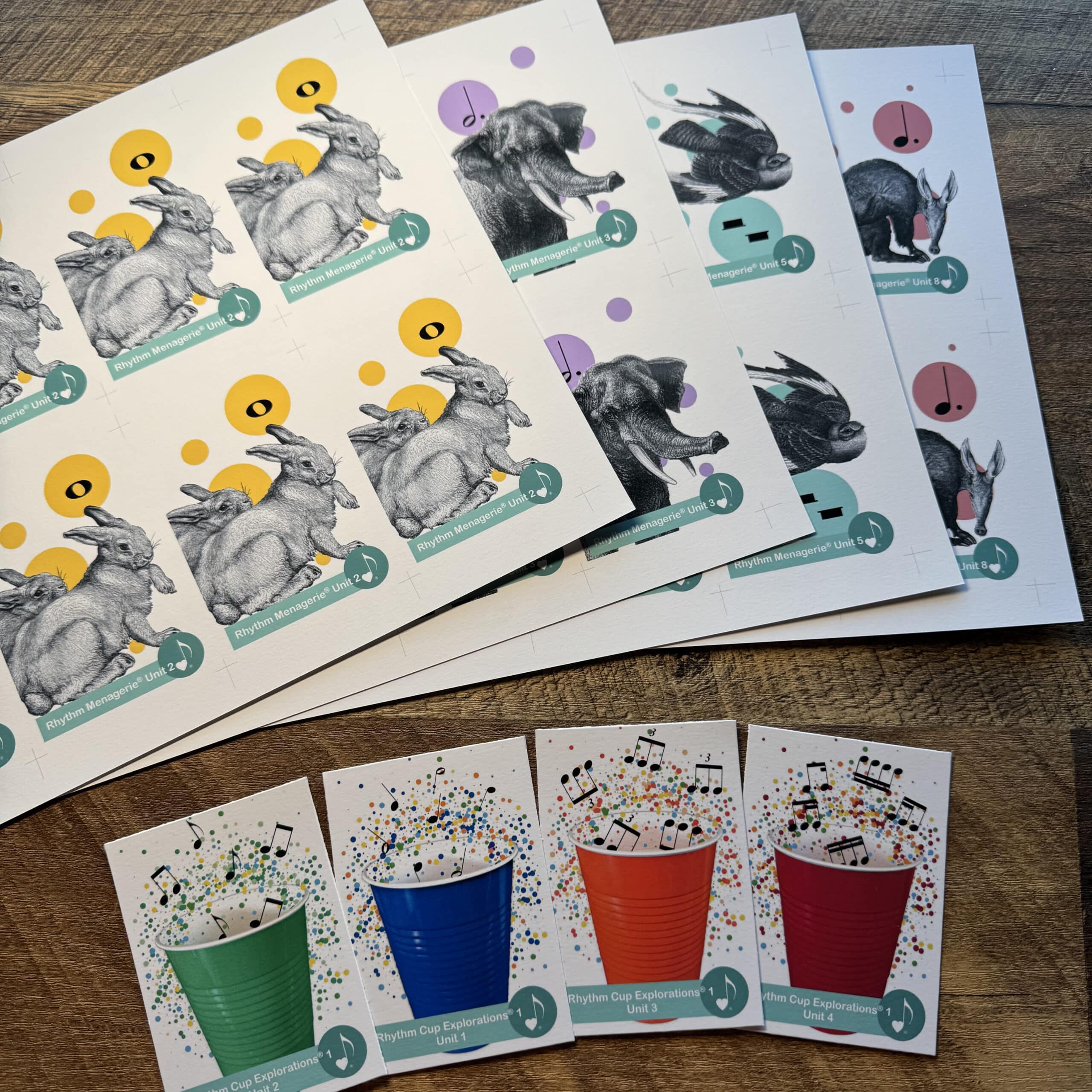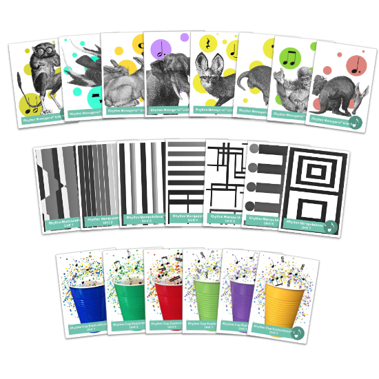 - Building excitement – The artwork for any of our rhythm curriculum is unique and very compelling to children. So displaying the cards on a wall in your studio can pique students’ interest!