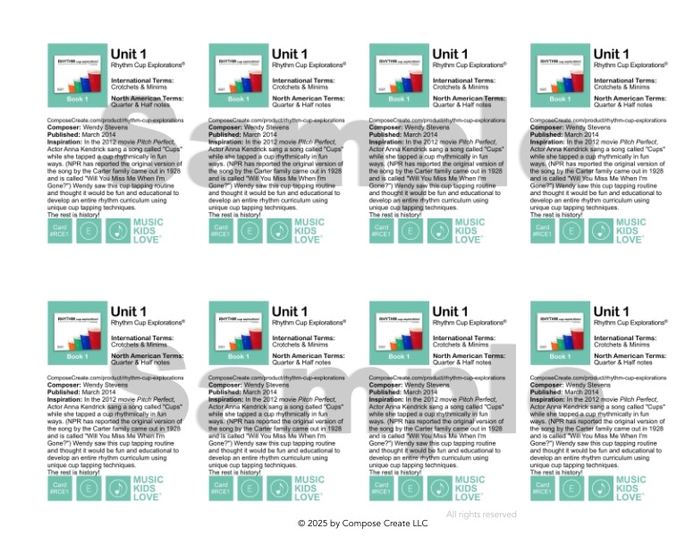 Each book in our rhythm curriculum is complete, so new cards will not be added to the files. However, if a new rhythm book or supplement comes out, we will create new cards for that and those will be available for purchase here.