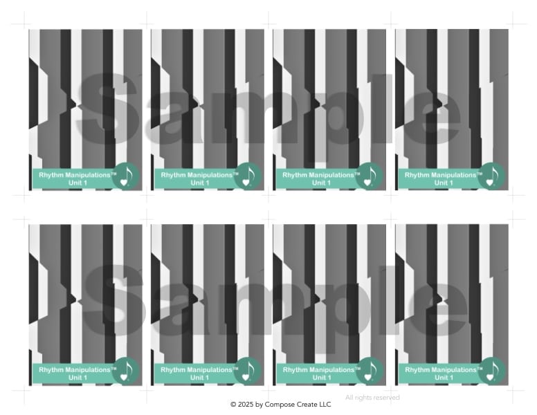 - Rewards – Reward your students when they have mastered the entire rhythm unit by giving them the Rhythm Achievement Card for that unit! The cards a perfectly sized to be stored and displayed in baseball card sleeves so students can see them in their own notebooks!