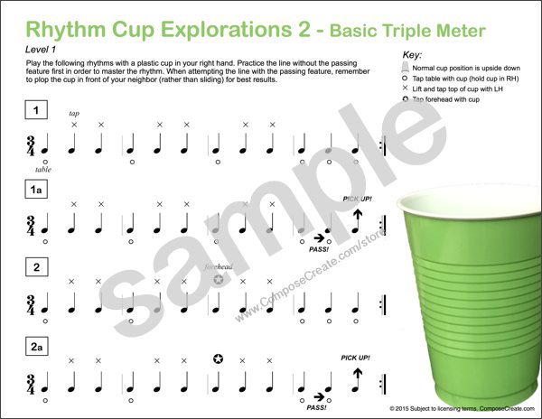 The Rhythm Cup Explorations® 2 PDF book is reproducible so that you can print and email it to any student that you directly teach. You can also show it on a promethean board, with a projector, on a computer screen, and on any mobile device. Book 2 contains something for diverse levels of students (you can find something for all your students to enjoy) but it does not cover all rhythm concepts. Consider purchasing the Rhythm Cup Explorations® Bundle if you would like to fill in the gaps of this book for a more comprehensive program.