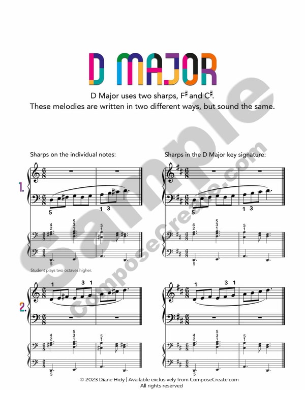 Diane Hidy recommends introducing a new Smart Scale a few weeks before you teach a piece in that key. By doing this, you’ll guarantee that your student already knows the key signature and the most typical melodic shapes before they try to use them. Since each scale has its own auditory flavor, kinesthetic feel, and associated muscle memory, learning some of these characteristics first will help make the new piece start off feeling less foreign.