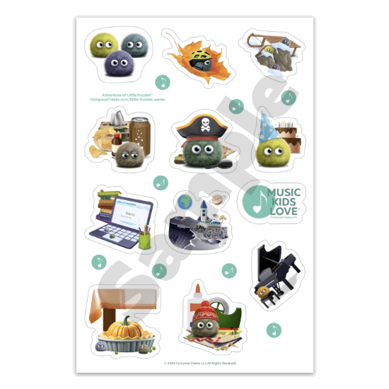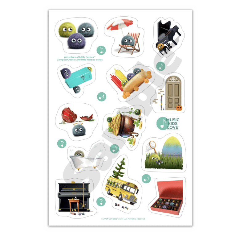 These exciting and colorful stickers correspond with our most popular Music Kids Love® Little Fuzzies Series! Choose a variation to see how the individual stickers look.