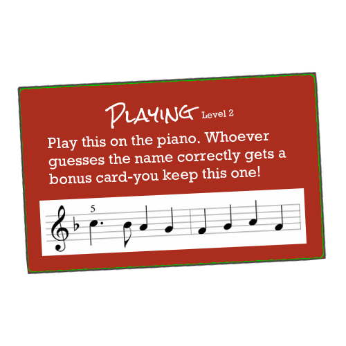 I just had a Christmas Performance Workshop group lesson for my six students, and we played this game as an ice breaker game. They loved it! They didn’t want to stop! It was so much fun to watch the kids come together for the first time, and interact with one another. They absolutely loved the “acting” tasks and “finish a tune” challenge. Highly recommended for group lessons!