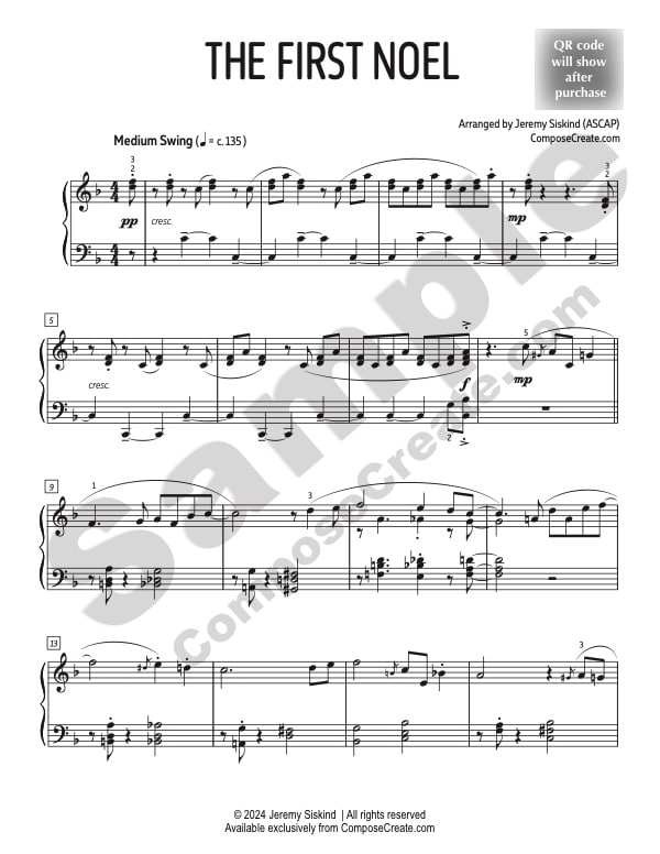 With your purchase of the The First Noel studio license, you will receive a bonus mp3 recording of the piece performed by Jeremy Siskind. You are permitted to send this example performance track to your students to help them learn the piece.