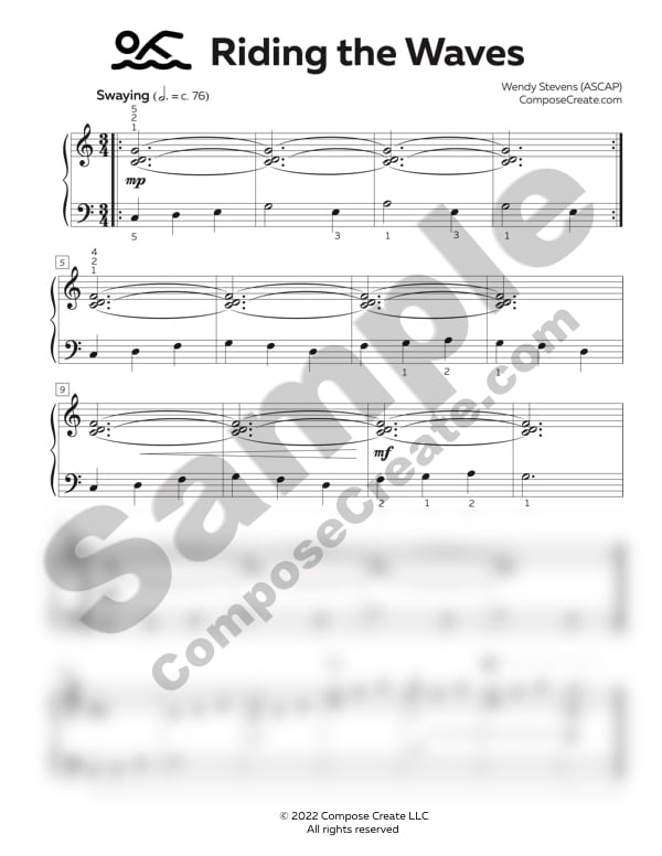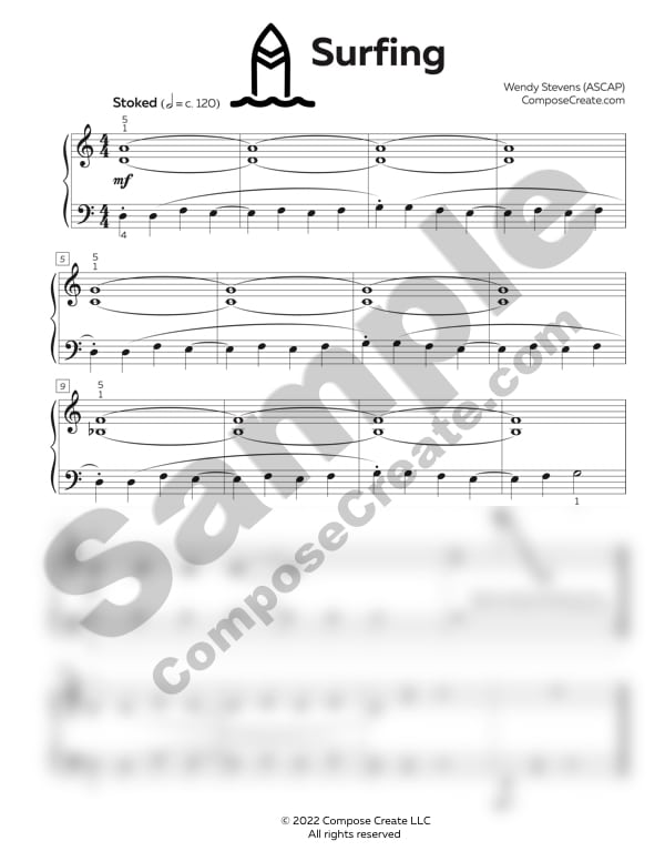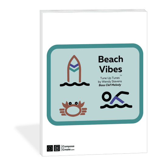 Beach Vibes – Mid Elementary (reading bass clef, shaping LH melody, LH independence)
