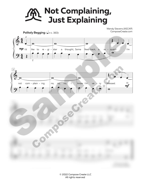 A Few Complaints – Mid Elementary (reading bass clef, shaping LH melody, LH independence)