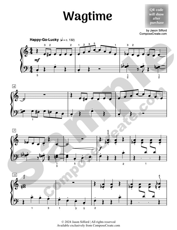 With your purchase of the Wagtime studio license, you will receive a bonus mp3 recording of the piece performed by Jason Sifford. You are permitted to send this example performance track to your students to help them learn the piece.