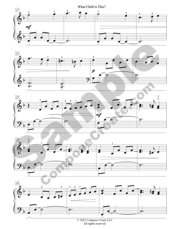 What Child Is This early intermediate also comes with a free mp3 recording so that you can listen and learn the piece more easily. You are granted permission to share this file with your students that are learning the piece.