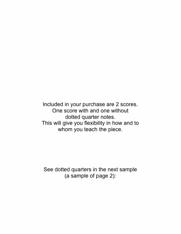 I love how Wendy supplied both the “straight” version and the “dotted” version for this piece, and it is easy to count and play for the kids who love this peice. When they play it with the music but “by ear”, then the dotted version can be previewed and shown- I love that she did this with the student and teacher in mind. Wonderful idea.